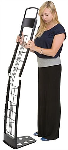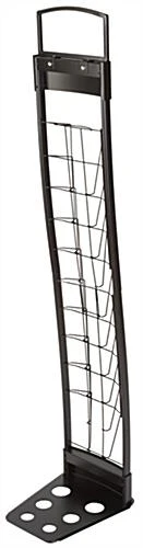 Three pieces snap together for this 10-pocket literature rack. Each pocket is 9.25″ wide x 12″ high and 0.75″deep. Each piece on this literature rack is constructed from black finish steel. The unit is highly durable and capable of matching with almost any decor. This literature rack can be easily taken apart for transportation and storage. A black carrying case is included with the unit. The case features two straps for easy literature rack carrying.