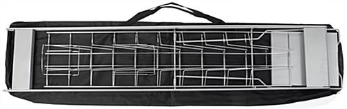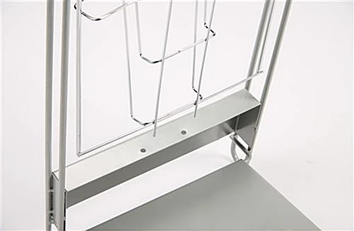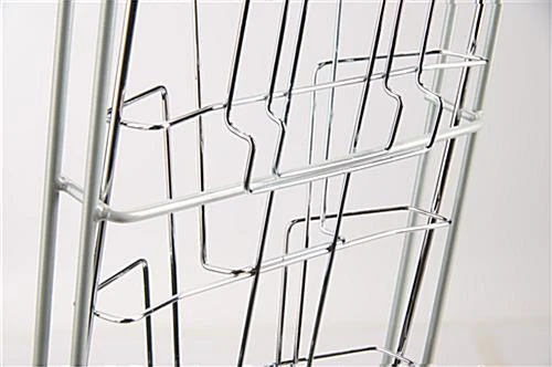 This silver magazine rack is ideal for use at trade shows. These literature stands are great for giving away promotional materials at exhibitions. Each portable rack has 10 pockets to hold magazines, newspapers, brochures, pamphlets and other types of promotional materials. The chrome finish on this stand gives it an attractive appeal. This silver magazine rack that is wire is lightweight and convenient to transport. Each display stands 56” high and weighs only 11 pounds. Use a literature holder as a way to give away free materials and increase brand recognition for a company or product. Use this display in a doctor’s office, school, or library.