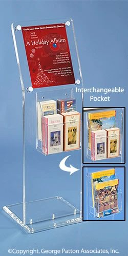 The freestanding catalog rack, magazine display is perfect to display magazines, catalogs, brochures, or handouts! This catalog rack fits in all environments, especially stores, malls, dealerships, or any businesses! This catalog rack has an 13″w x 17″h graphic holder with four silver screw caps! The acrylic brochure pocket on this catalog rack can be configured to hold (2) tri-fold brochure holders side by side or remove the center divider pin and insert 8-1/2″ wide magazines. Since this pocket has two tiers, combinations of both wider literature and tri-fold pamphlets are also possible. This acrylic catalog rack matches every décor and is sure to catch the attention of everyone passing by!