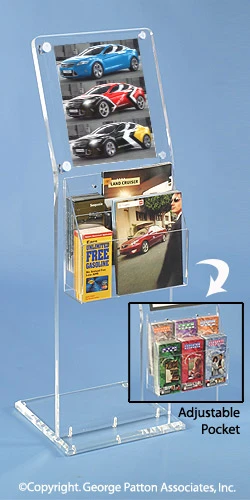 This literature stand, also known as an acrylic brochure holder, is perfect to display catalogs, brochures, or magazines! This literature stand has an 11″w x 14″h sign holder with brushed silver standoffs. This literature stand, floor standing brochure display rack comes with a sturdy, two- tiered acrylic pocket. The acrylic literature pocket can be configured to hold (3) tri-fold brochure holders on each tier for (6) total or remove the pin on each tier to hold 8-1/2″ wide magazines or catalogs! This literature stand matches every décor and is sure to catch the attention of everyone passing by!
