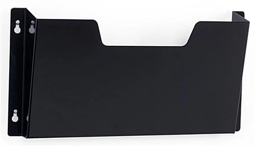 This wall file hanging rack has one pocket for holding letter size documents. Each black folder organizer holder is constructed from powder coated steel for lasting use! The office file rack is a great tool to help keep any workstation neat and orderly. Each folder organizer includes mounting hardware and anchors. Each file rack can be used in an office or home. The black holder will make finding documents at a workstation a simple process.