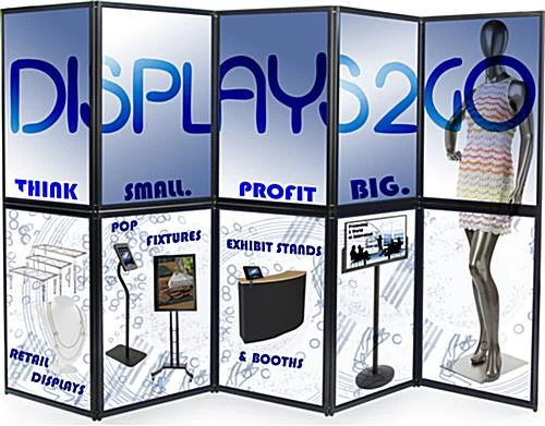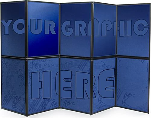 A hook and loop folding board with prints is a custom 121”W x 73”H (10) panel backwall for trade show and exhibit booths. Constructed of aluminum framing, the large display is lightweight to fold effortlessly into different configurations and disassemble neatly into the included carrying bag for transporting. (2) Sets of 5 pieces stack on top of each other to create (10) panels of custom printed graphic fabric pieces with this portable folding board with prints by using the downloadable artwork templates provided. A double sided display, the fabric is light blue on one side and dark blue on the other for different backdrop options. The folding board with prints is designed with hook and loop receptive material with which the digitally printed custom graphics on PVC are already affixed. Bring this popup backwall to any trade show or marketing event to advertise different company products and services! Please Note: Buyers have the option of removing graphic panels to add accessories, or move them to the other side of the board to create a double-sided display!