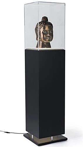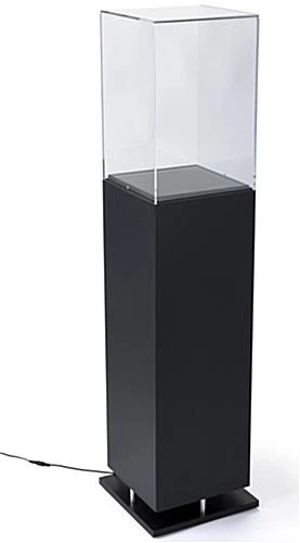 13″ Pedestal Display Case, Bottom Lit, Interior LED Lights – Black