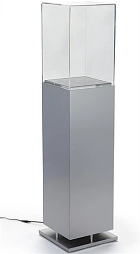 13″ Pedestal Display Case, Bottom Lit, Interior LED Lights – Silver