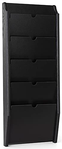 This 5 pocket medical chart holder is HIPAA compliant, ensuring that clients’ paperwork and information is kept confidential at doctor’s offices, nursing stations, walk in medical clinics, and more. The wall mounted file folder rack is constructed of solid oak wood for a durable and long-lasting design. Our landscape tiered 5 pocket medical chart holder is finished with a sleek black stain, adding a more modern touch to your office. This privacy folder rack ships fully assembled and ready to install with the pre-drilled holes on the unit’s backside. These tiered black file organizers with landscape orientation use wood exclusively made in the USA. Each insert has 9″ front panels, perfect for keeping patients’ records and sensitive information private. Use our HIPAA compliant 5 pocket medical chart holder to stay organized and make your clients’ privacy a priority.