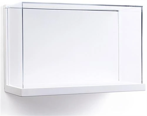Highlight 3-dimensional artwork pieces in your gallery with this museum style wall mount display box. The white MDF interior frames a basketball shoe, artifacts, or memorabilia to showcase with classic appeal. This contemporary wall mount display box has a clear acrylic vitrine to protect objects from dust as well as enhance the viewing experience. The cover lifts off for easy access to 3-dimensional artwork and screws in place to ensure contents remain safe. The clean lines of the acrylic cover and sleek white framing ensure your objects are elegantly presented. Showcase several small historic chinaware pieces or an ancient artifact in your gallery or home with this display box.