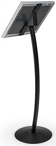 Complete your storefront display with floor stands meant to be curbside, like this outdoor sign pedestal. Designed for 17” x 11” posters, the UV-resistant PVC lens and interior weatherproof magnetic strip reassure crisp visibility and a tight seal. The locking snap frame sign pedestal allows for easy display updates. A sleek curved post, coupled with weather and rust resistant aluminum, ensures a durable unit to face the elements. Each poster holder provides a floor stand suitable to showcase menus, promotions, or event details. No longer will a poor forecast damper your business’s advertisement needs with this sign pedestal.