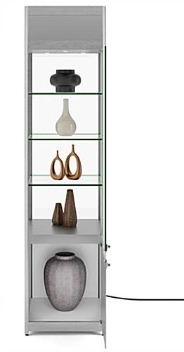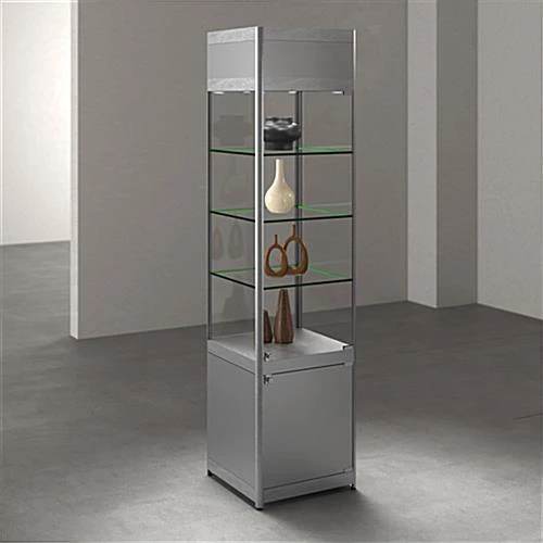 This light up retail tower is a beautifully designed display case that’s ideal for any business. The glass cabinet with LED lighting gives you an eco-friendly accessory when turned on. The silver retail tower also includes 3 adjustable shelves which is great for adapting to merchandise that’s larger in size. There are two key locks on the display case that are used for showcasing and storage to keep your products safe and out of sight. This retail tower ships unassembled to save on shipping costs and can be put together with a second helper. Give your business a quick upgrade with this beautiful accessory with LED lighting!