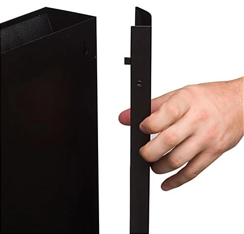 This wall magazine rack has (2) endcaps, one on each side of the display. These endcaps can be taken off to combine multiple displays into one unit, with the endcaps helping to create one seamless wall mounted display. A catalog holder, wall magazine rack includes the necessary hardware and instructions to attach the endcaps to the display. There are (2) pre-drilled holes to mount the magazine rack on a wall, but you will need to purchase the proper hardware for whatever surface the display is to be hung from. This wall magazine rack, also known as a catalog holder and a wall mounted display, organizes magazines neatly in your waiting room, giving guests an easier time in making their selection.