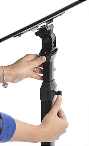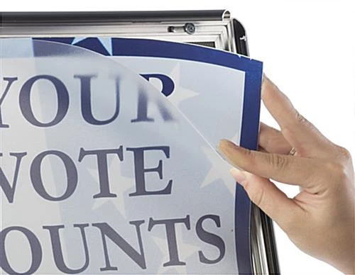 This black 18 x 24 poster frame pedestal is the best way to display product advertisements and interchangeable menu selections. The height adjustable sign holder displays the prints between 56.5”h and 75.5” h for the perfect viewing height. Each rotating frame pedestal swivels easily to portrait or landscape view. The sign holder can be used to broadcast new promotions, menu items and even upcoming events! Featuring sturdy aluminum construction, the frame pedestal shown here is sure to last for years in heavy traffic environments. Bring attention to your products and services with custom print advertisements with a signage display!