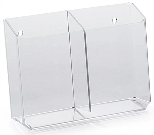 This leaflet pocket, also called a literature holder, can fit well over 100 brochures! The pamphlet display is best suited for tight locations by front end registers due to its small size of 8.6″-wide. This leaflet pocket that is constructed from acrylic comes with two compartments. Each compartment can hold a thick stack of 4″-wide brochures. The flyer display can be bought in bulk at a discount for placement throughout a businesses or at multiple locations. Each leaflet pocket’s simple design allows the display to sell at a low price point. The literature holder’s acrylic material is more durable and better quality than cheaper molded plastic. This leaflet pocket that is completely see-through provides a clear view of each stack of pamphlets. Viewers do not need to remove pamphlets from the display in order to determine the product or service being promoted!