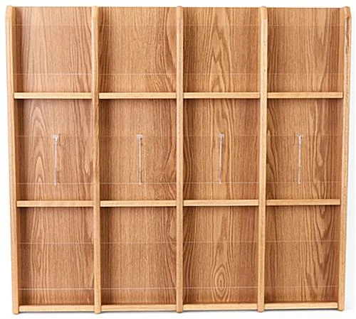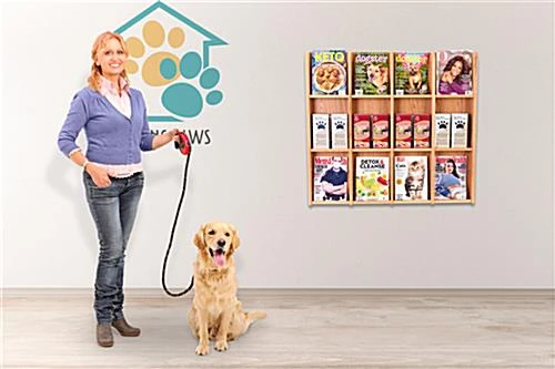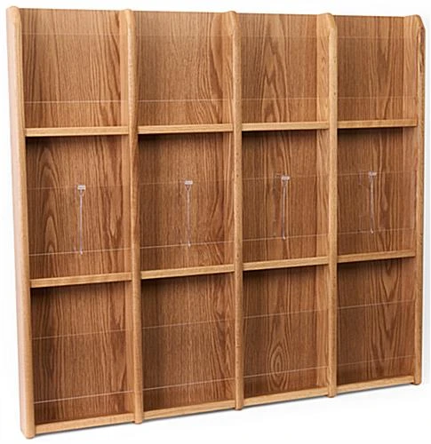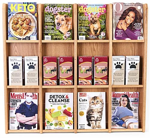 This wall magazine adjustable hanging display has a solid wood fabrication with clear acrylic front panels. Each literature holder has twelve pockets for 8.5″ x 11″ catalogs. Alternatively. the magazine adjustable hanging display’s slots can each hold two 4″ x 9″ brochures. This is a great way to keep guests entertained in doctor’s offices, waiting rooms and building lobbies. Each magazine hanging display features a light oak finish that features a neutral appearance. The literature racks include mounting hardware and feature pre-drilled holes.