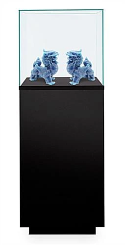 This museum pedestal display case will elevate the most straightforward merchandise in a sleek and modern showcase. This eye-catching fixture features a 17″ lift-off UV protective tempered glass top with a keyless air cylinder pneumatic locking system that does not require an electrical outlet. It is perfect for upscale presentations by retail jewelers, museums, art galleries, and more. The frameless glass design provides customers with unobstructed viewing from any angle. The airtight unit comes with silica gel bags in a lockable compartment for ultimate preservation and protection from moisture. Floor levelers provide the perfect solution for uneven floors, and a 4″ toe kick provides a seamless polished finish at its base. This elegant pedestal display case makes a big impact with a small footprint with overall dimensions of 20″w x 20″d x 52″h. Our quality exhibit is eco-friendly, made from FSC-certified CollinsWood®, helping to reduce our environmental impact. This beautiful museum pedestal display case arrives fully assembled for ease of use, making it perfect for retail stores, exhibitions, art galleries, and so much more.