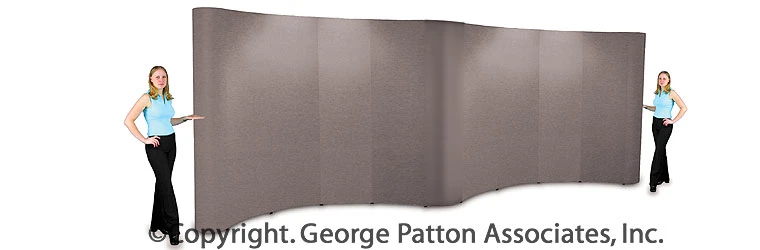 This compact pop up display is made up of a lightweight aluminum frame and hook and loop receptive fabric panels. The curved design of this system is the best solution to provide the maximum amount of room for mounting graphics. The compact pop up display features grey fabric and accepts hook and loop fasteners. Made for 20′ x 10′ booths, this backdrop is 240″ wide and takes approximately 15 minutes to set up. The compact pop up display stands 7’4″ tall giving exhibitors ample space to hang poster frames and graphics or any other lightweight accessories. This backwall includes two trade show shipping cases to make transportation easier. The cases feature heavy duty built-in wheels and handles for ease of movement to and from events.