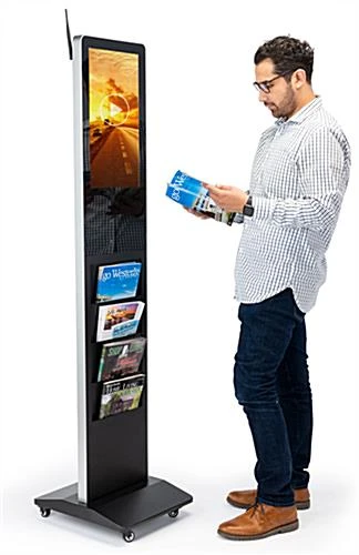 Freestanding Magazine Rack Digital Signage with HD Display & 4 Smooth Gliding Wheels