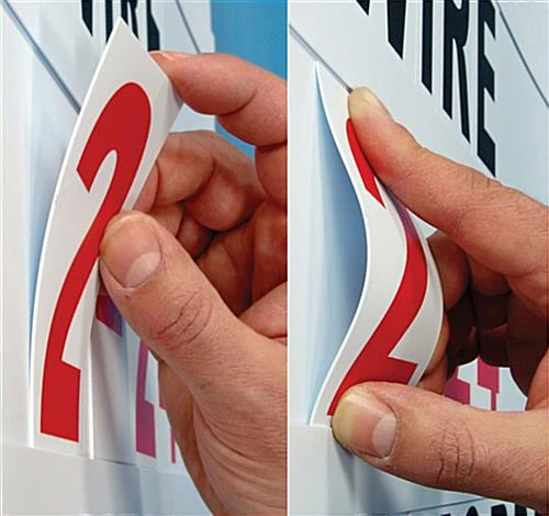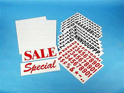 This is a plastic a-frame that has a brace in between both sides to prevent the unit from tipping over. This built–in, stabilizing support prevents the signs from accidentally closing. Users can also place a sandbag or weight on top of the plastic a-frame brace. This practice helps weigh the unit down as well. This plastic a-frame, also called a sandwich board, is great for promoting deals outside of a business. Any type of company could benefit from these signs, such as restaurants, retails shops, and café’s to name a few. This is a plastic a-frame that comes with accessories. The letter set included with each unit has over 300 letters and numbers, and a header with the words “SALE” and “Special”.