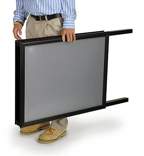 The free-standing sidewalk sign features two 22″ x 28″ sign frames for marketing advertisements. Side walk displays are held in place by an easy to use snap frame poster holder. This sidewalk sign makes loading and unloading poster very easy. The edges of the snap frame flip open/closed allowing you to easily change out marketing posters in no time! Simply snap open the 4 edges of the sidewalk sign frame and remove the protective PVC lens. Users are then free to swap out the curb signage. To finish, reapply the protective lens, flip the snap frame closed and the sidewalk sign is ready to go. The entire process only takes a matter of moments.