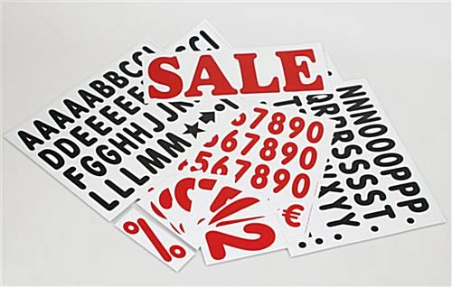 1 – Set of (314) 4″ plastic sign numbers and symbols (black letters, red numbers)