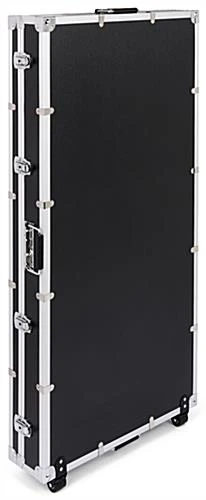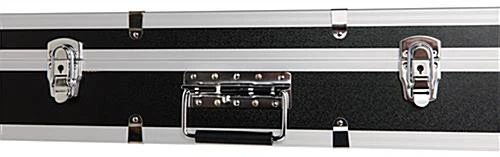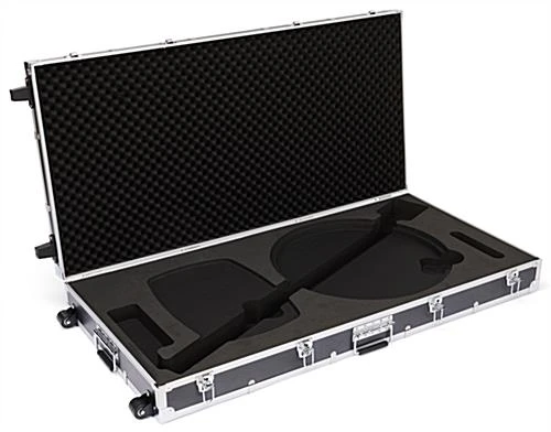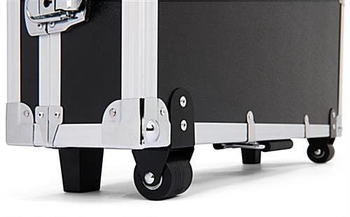 This locking hard photo booth travel case features an aluminum frame with a black ABS plate and customized EVA foam inserts to prevent scratching or damaging during transportation. Our container is great for transporting portable ring lights to weddings, trade shows, hotels, company outings, and more. Use either the top or side handle on our mobile locking photo booth travel case for easy and comfortable transportation. Included are 2 locks with a set of keys, and 2 latches to safely secure and prevent from being tampered with. Though our mobile unit has customized foam inserts and an aluminum frame, it is not recommended for shipping but rather for transporting from one local event to the next. This portable container is the perfect investment for rental companies, event planners, social media influencers, DJs, and more. Use our sleek locking hard photo booth travel case with 2 heavy-duty wheels for transportation when needed and storage to keep organized.