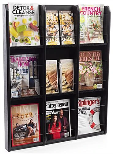 Black Finish Magazine Rack with 9 Full-Size Pockets