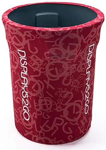This printed 32-gal trash barrel cover is made of a spandex material that will contour fit to your trashcans. Each garbage can wrap is fully customizable and fits most standard thirty-two gallon receptacles. The contour fit printed trash barrel cover is great for additional advertising or just dressing up a boring bin. The spandex material has full graphics that are customizable to your needs. Each trash barrel cover keeps unsightly trashcans concealed while offering advertising in a unique low profile way. This full graphics contour fit receptacle wrap will transform your event.
