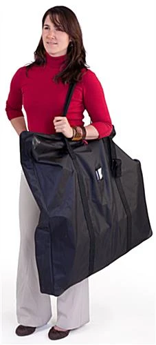 This demonstration counter, also called an exhibit booth, comes with a carrying bag. The promotional booth can easily fit inside of this large transportation bag once collapsed. Exhibitors can quickly assemble and disassemble this demonstration booth that collapses in less than 5 minutes. This portable exhibit booth requires no tools for set up! The demonstration counter is constructed from plastic and aluminum. The tradeshow promotional booth has (2) plastic shelves on the interior of the display. Extra brochures, pamphlets, flyers and business cards can be stored on the shelves out of sight so your exhibit always appears clean and organized. The demonstration counter has a header for displaying company logos, graphics and more. The header of the tradeshow booth sits 69-3/4″h off the ground and is 30-1/4″w x 11″h. Exhibitors must have the header customized at a local print shop. The demonstration counter is tall enough to get potential customers from afar to come and see what promotion is being held at the booth. When assembled, the demonstration counter is lightweight enough to be moved with ease by one person. The tradeshow booth can be used in one location in the morning, dissembled and put back together and be used in another location without breaking a sweat.
