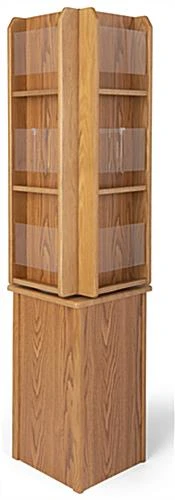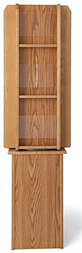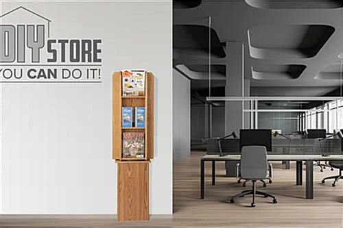 This wood magazine rack features a 3-tiered rotating design with optional pocket dividers to hold various catalogs and brochures at libraries, office lobbies, retail stores, schools, and more. The floor standing fixture includes all necessary hardware to install within minutes. Our tiered wood magazine rack has a robust and durable wooden construction with a medium oak finish that will last for years of use. This USA-made literature holder will add a modern appearance to your business while providing customers reading materials while waiting in doctor’s offices and lobbies. Use the optional clear acrylic pocket dividers to switch out catalogs for brochures when desired. This floor standing rotating wood magazine rack is excellent for providing take-away reading materials for customers at cafes, local attractions, travel centers, and more.