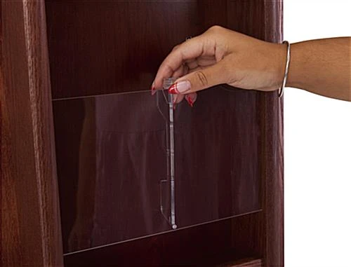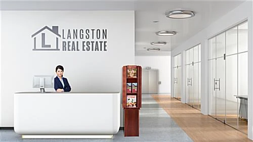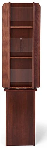 This wood magazine rack features a rotating top, designed to provide various reading materials to patrons in waiting rooms, libraries, gyms, real estate agencies, and more. The Wooden Mallet literature holder has clear acrylic front panels for keeping pamphlets wrinkle-free and organized, maintaining a clean and professional appearance in any office. Also included are optional pocket dividers to fit both catalogs and brochures, giving you the option to switch out content when desired. Our USA-made rotating wood magazine rack features solid wood construction for rugged durability in public spaces. The stand conveniently ships with all necessary hardware for a quick and effortless installation. Our upscale magazine rack will help your office remain organized while making reading materials more accessible to customers!