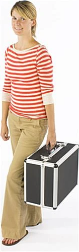 These portable exhibit displays feature aluminum constructions with matte black finishes. The body is made up of three literature pockets that fold out in an “accordion-like” mechanism and easily lock into place. Use these pockets to hold magazines, catalogs, and other informative literature. The tabletop is made of a wood laminate that folds in for storage and measures 20″ x 14-1/2″. The entire portable table folds into a compact design that easily fits inside of the case. There are a huge selection of for all your need.