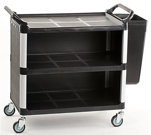 This bus cart and accessories provide a portable unit for wait staff. Each service equipment pushcart has two easy grip handles that are designed to make steering manageable and accessible from both sides. The bus cart and accessories that has swivel casters for easy maneuverability to provide effortless portability and additional elevation. This supplies carrier is manufactured with rounded corners which eliminate the potential for damaging walls if accidentally hit. The mobile hand trucks provide a portable unit to transport a multitude of materials at once with eases. These bus cart and accessories are ideal in numerous business environments such as schools, hotels, restaurants, medical practices, warehouses, store sales floors, and office settings.