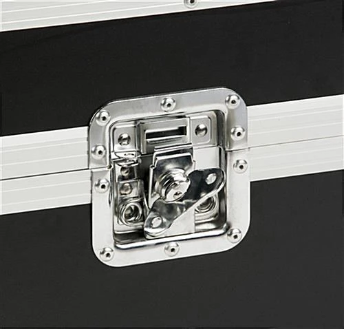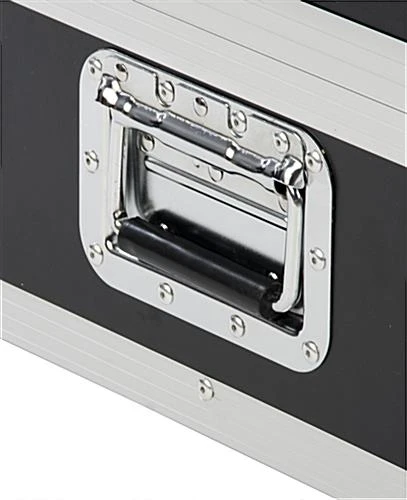 The expo equipment case features a large 42”W x 8.5”H x 29”D interior storage space to pack TV mounts, media components, product samples, literature, and other mechanisms to help organize exhibitor supplies while travelling. Designed to keep valuables safe, the entire inside casing is lined in EVA foam padding. 2 Fabric straps are featured with the trade show case that prevents the top cover from over extending and keeps it stable while packing and unpacking. 2 Non-locking wheels make it easy to transport the portable crate from a vehicle to a trade show exhibit booth. Also included are 2 recessed handles for lifting the case. Constructed of plywood and black fireproof ABS panels with non-rust modules, each exhibitor crate is a great choice to pack and store exhibit supplies while travelling.