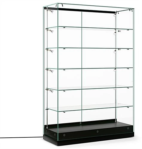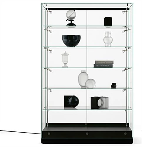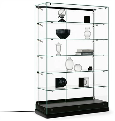 An all glass LED showcase is the perfect display cabinet for jewelry, collectables, or artifacts. The curio measures 48” wide and 76.5” tall to give you more than enough room in your store to lock up even your most expensive items. The frameless LED showcase has side mounted eco-friendly lights to highlight your possessions at once. The plunger key lock is ideal to prevent your jewelry and other valuables from being stolen while enclosed. The tempered shelves within the showcase are adjustable and can be removed to accommodate taller items within your store. Add a display cabinet to hold your more expensive products and to save space in your retail environment!
