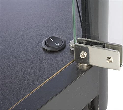 This LED glass counter corner is great modern option for malls, museums, and stores to showcase high end merchandise. The display cabinet comes equipped with 4 eco-friendly bulbs to save you money while also giving your items a nice spotlight. The illuminated glass counter has a modern design that will look marvelous in any retail environment and can be used in conjunction with other showcase fixtures. When placing your display cabinet in your showroom, adjust the levelers to accommodate to any uneven surfaces on the floor. The adjustable shelves are tempered, meaning they are strong enough to hold some of the heavier items in your store when placed inside the glass counter. Give yourself some assurance knowing that your merchandise is safe by utilizing the hinged lock and the brightly illuminated by the side lights featured on the display.