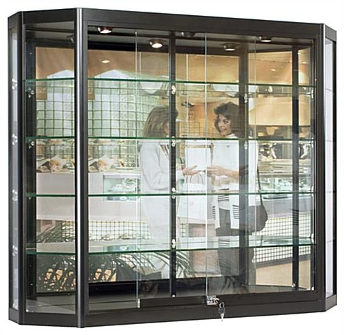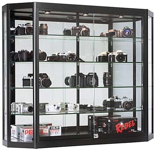 4×3 Wall Mounted Display Case W/Mirror Back & 3 Top LED Lights, Locking – Black