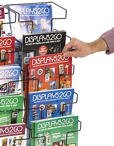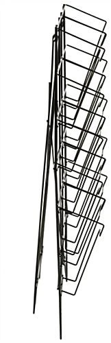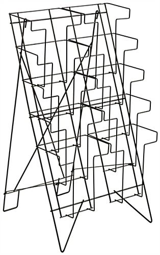 With 5 tiers and 10 pockets this metal wire magazine holder is the ideal solution for showcasing catalogs at your business! The black powder coated finish gives this literature display a professional look sure to match any environment. Each countertop magazine holder comes outfitted with a unique design that folds down to quickly store it away. Use the literature display to hold a large collection of catalogs, periodicals, publications, and more! The black steel wire stand is a great addition for waiting areas or on countertops. Use the magazine holder at your business to save space and easily organize reading materials!