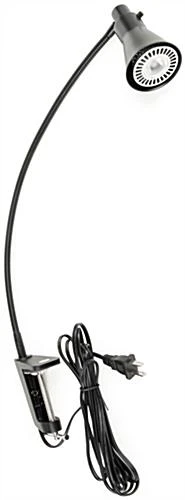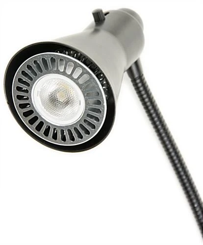 This LED exhibition spotlight has a bright bulb that emits a vibrant yellow tint to illuminate your promotional displays. Set on a stainless steel arm that can be bent in a range of positions, this trade show lighting accessory can be mounted on a back wall, presentation board, or countertop. The bulb uses a cool temperature, set between 4500 – 5000K, that reduces the electricity needed and prevents the adjustable exhibition spotlight from overheating. As well, a 10’ cord is provided to eliminate the need for an extension cord and improve overall safety. While many other fixtures on the market are only compatible with specific displays, such as banner stands, this unit has a universal clamp that opens up to 2.165” to fit on a range of promotional pop-ups and trade show furniture. Use a spotlight at your next expo to brighten up graphics, attract visitors to your booth, and of course outshine your competition.
