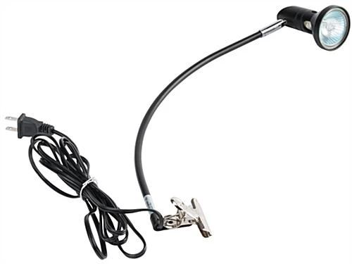 With an adjustable clamp to secure itself to most retractable banner stands, this black halogen exhibition spotlight is an attractive and functional way to help promotions stand out at a busy trade show. The 50-watt bulb included with this lighting accessory has a natural lifespan of 2 years and is made with damage-resistant stainless steel so you can illuminate your graphics at multiple events. As well, aluminum and ABS plastic are used to keep the lightweight exhibition spotlight sturdily in place when mounted on your banner display. The adjustable clamp opens up to 0.315”, able to fit on many retractable poles. While there is no on-off switch, the 10’ cord is long enough to easily plug in and disconnect when needed to prevent the 50-watt bulb from burning out. Use this spotlight at your next promotional show or on-site at your business for brilliant illumination that will help your graphic be seen and appreciated.