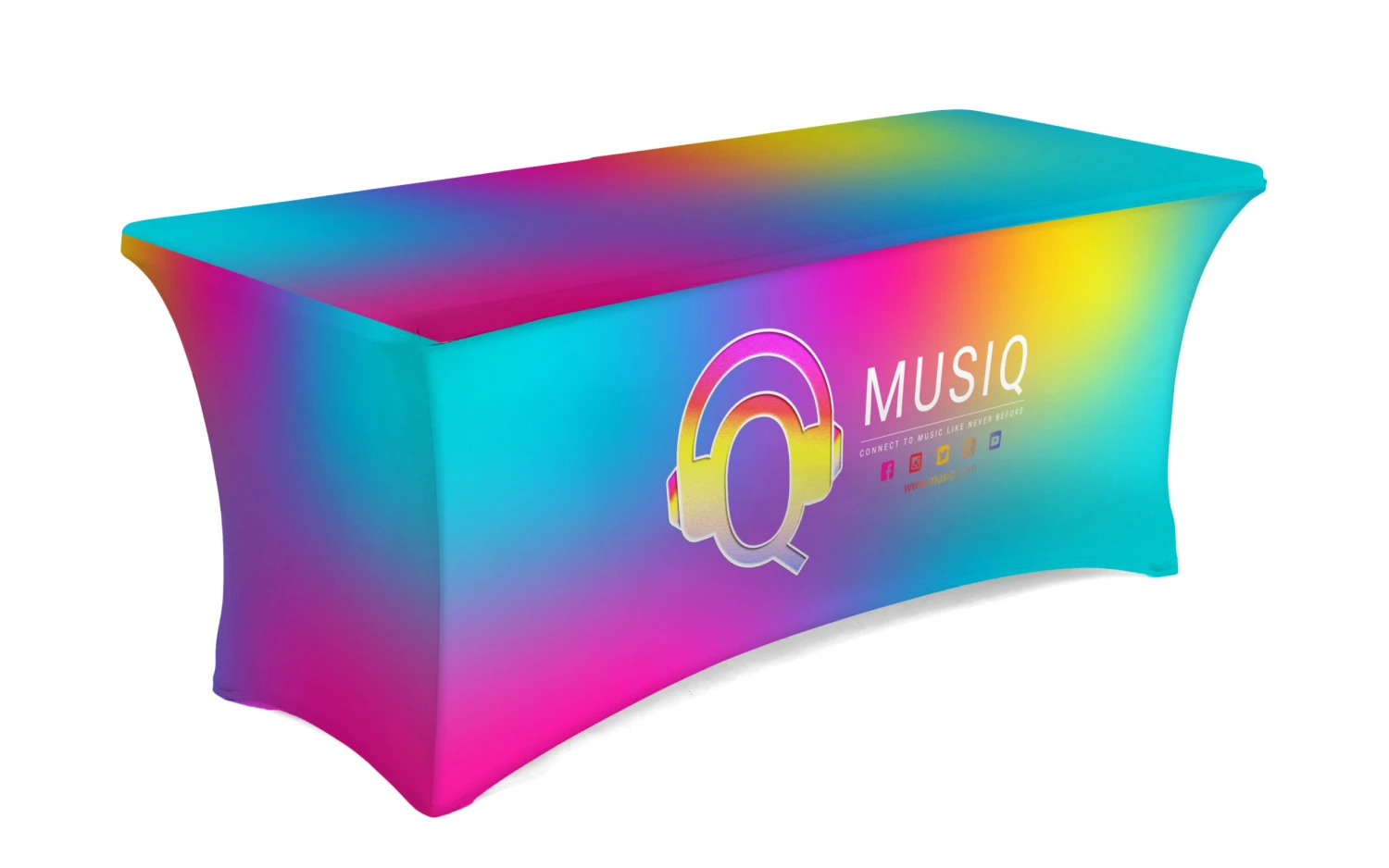 These fitted linens are definitely a perfect accessory for any special event or trade show. The full coverage, vibrant printing on these table cloths draws the attention of attendees from your competitors next door to your trade show booth. Have your company logo, advertisement or slogan printed on these table cloths for a huge impact. These table cloths, also known as stretch table covers, are perfect for any special event, tradeshows, conventions or exhibition halls. Make your booth look more eye-catching and appealing to attendees with these table cloths.