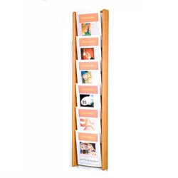 This 6 compartment wall mounted magazine display rack is designed to hold your reading materials upright and flat so the top corners don’t fold over the pocket front. The back and sides are constructed of oak wood and finished in a light oak stain. Our 6 compartment wall mounted magazine display rack features clear faces for full visibility of your items. The “waterfall” style design angles periodicals or single sheet flyers forward. The magazine display rack is manufactured by WoodenMallet™ in the USA. This affordable literature holder is recommended for doctor’s offices or businesses with a waiting room. Organize sitting areas by storing reading materials on the wall!