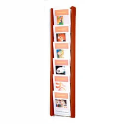 This 6 pocket magazine rack wall mount is a great organizational tool for professional business environments. The angled slots are designed to hold magazines and flyers upright and flat against the acrylic fronts. Our 6 pocket magazine rack wall mount is made in the USA with domestic red oak wood and finished with a handsome red mahogany stain. The front is clear acrylic, allowing full view of the reading material. The magazine rack ships fully assembled and comes with mounting hardware. Highly recommended for doctors offices or businesses with waiting rooms or lobbies, our mahogany literature holder will accent any interior decor.