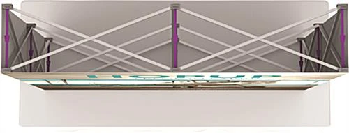 Your custom image is printed on a stretchable poly-knit fabric using a four color inkjet process. The output resolution is approximately 600dpi and is ideal for this type of advertising. Any wrinkles that occur during transportation or storage are stretched out when tension is applied by the frame. The end panels remain attached to the front image, but need to be detached from the side of the frame to collapse the frame.