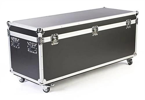 A transport case is designed with users in mind! This equipment case, transport case is 62-1/2″ wide, making it one of the largest shipping cases we currently offer online! The transport case, also known as a storage case, will therefore be able to hold a large quantity of items as well as those of large size. This transport case, for example, could be used in between events to store speakers, folding podiums or even banner stands all in one wheeled case! We even provide the transport case with 3″ diameter, locking wheels, making your container easy to move, regardless of how much you’ve stored inside.