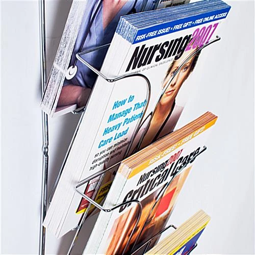 This flyer rack is ideal for use in practically any point-of-sale environment. An affordable price, durable construction and space efficient design makes this magazine holder a great value. This flyer rack, also known as a magazine holder, is constructed from steel wire with a chrome finish. There are many advantages to purchasing a wire literature display over a plastic or wood unit. The metal wire flyer rack is much more durable than items made from other materials. It will not shatter if dropped, or splinter from years of use. Additionally, the flyer rack that has a chrome finish has a modern style, which enhances the surrounding area. Although this display is both durable and stylish, it is very affordable. The flyer rack that sells at economical prices costs much less than many so called “economy” style units.
