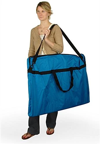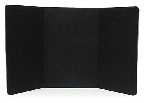 This folding display board, also known as a tabletop exhibit, is a great product for trade shows, business meetings, and traveling presentations. Each folding display board is constructed of three folding panels that are made of a foam board. Covered in black hook and loop receptive fabric, you can arrange any combination of accessories that you choose. With overall dimensions of 6’w x 3’h, this folding display board offers 18 square feet of display space. Attach attention-grabbing signs with acrylic poster holders, and offer information with hook-and-loop receptive brochure pockets. We sell this folding display board with carrying bag for transportation and storage. Each foldout exhibit weighs just 10 lbs in its bag.