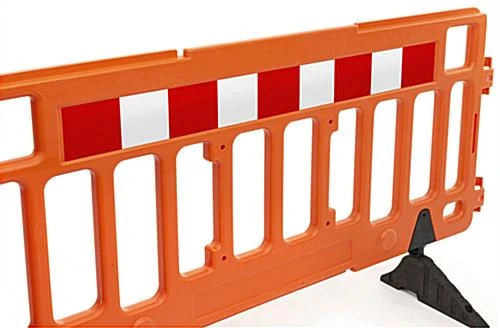 Portable Pedestrian Barrier System with Embedded Red and White Reflective Tape
