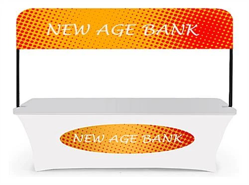 Promotional Table is 8′ Long with Custom Header & Cover