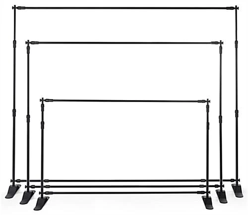 This step and repeat banner frame is adjustable from 3ft to 8ft high and 4ft to 10ft wide. Use this lightweight backdrop stand with an existing graphic for professional-style photography at a fashion show, movie premiere, or press conference.