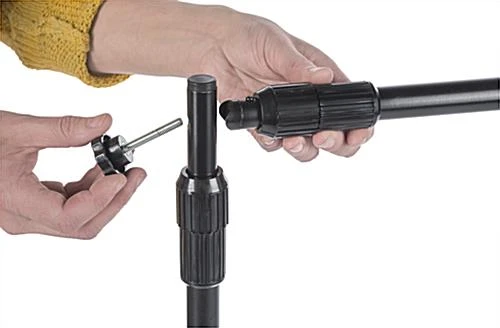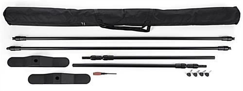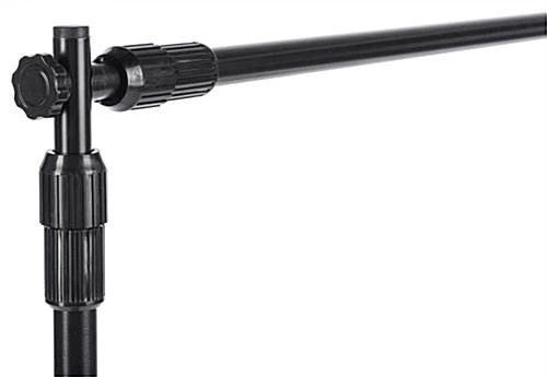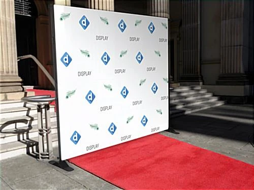 Each telescopic step and repeat banner frame features black aluminum poles to displays fabric or vinyl banners. The durable adjustment knobs are easy to twist and tighten. Two sturdy steel feet keep the backdrop stand in place, and a screwdriver with two screws are included for easy base assembly. When your red carpet event is over, the step and repeat banner frame can be quickly disassembled and packed in the convenient woven carry bag.