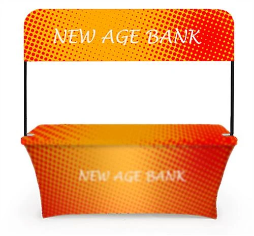 These banner graphics also come with a carrying case. This trade show signage that is a promotional tool is easy to put away and transport from one convention to another. The frame can also adjust to fit a 6 foot counter, although the fabric will not stretch snugly around the display. Purchase replacement graphics for this trade show signage that is a table banner to accommodate different setups. The stretch fabric on the display pulls images taut and gives a professional appearance. This table banner, trade show signage, can help increase foot traffic and improve brand recognition. This unit is also available with a table and stretch graphics. Use this trade show signage today to improve any exhibition setup.