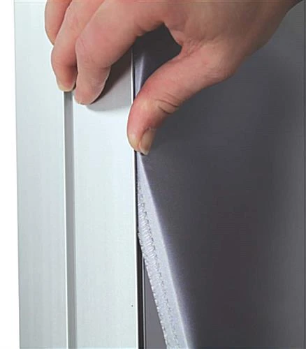 The illuminated trade show display system is an impressive visual at crowded events that catch an onlookers attention to effectively promote company products and services. The 112” wide and 95” tall flat panel modular that holds a custom printed graphic is fully lit for a special effect exhibit booth. (4) Rigid wing accents embrace the center pane of the LED trade show display system. Easily assemble the Vector modular into a stunning pop up kiosk by stretching the dye-sublimated tension fabric over the aluminum extrusion framing wall for a taut backdrop that eliminates wrinkles. Disassemble the trade show display system into a custom molded and wheeled OCH2 carrying case for easy transport and portability.
